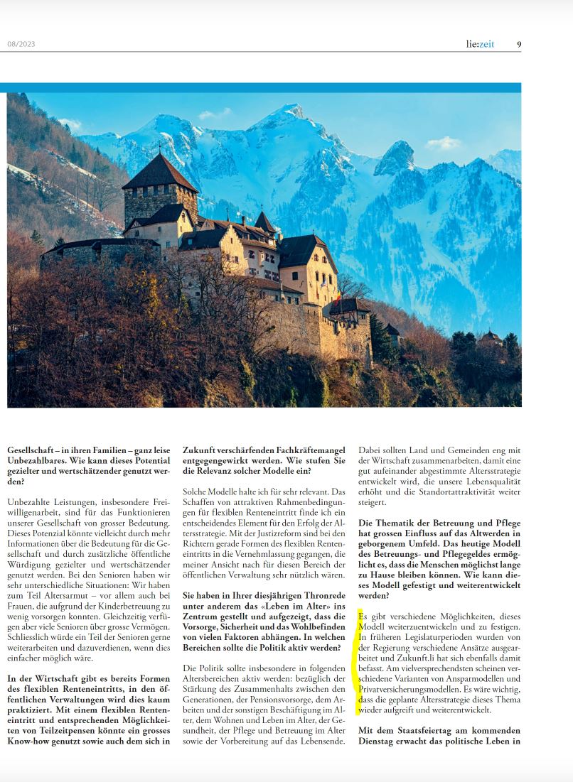 12. Juni 2023Was sagt die Regierung zu den Vorschlägen der Stiftung Zukunft.li / Landesspiegel(PDF)